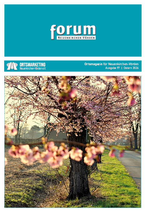 Das Forum Neuenkirchen-Vörden, Ortsmagazin für die Gemeinde, soll nach der Corona-Zeit eine Neuauflage erfahren. Wir freuen uns, dass die Nachfrage so stark gestiegen ist, und haben uns deshalb entschlossen, in Zusammenarbeit von edition.moby (bisher 88 Ausgaben forum!) und Ortsmarketing Neuenkirchen-Vörden einen Neustart zu wagen.